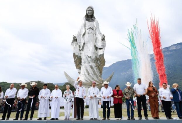 Entregan Américo y María escultura monumental de la Virgen de la Misericordia en El Chorrito