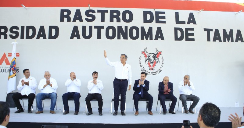 Acompañado por el rector de la UAT, Dámaso Anaya Alvarado, y dirigentes del sector ganadero del estado, el gobernador recibió de manos de Leandro David Soriano García, director general de Inocuidad Agroalimentaria, Acuícola y Pesquera del Senasica, el documento que permite la actividad diaria de la sala de corte y deshuese para la especie bovina, cámara de producto terminado, almacén, empaque y andenes de carga y descarga en el rastro ubicado en la Facultad de Medicina Veterinaria y Zootecnia, en esta capital.