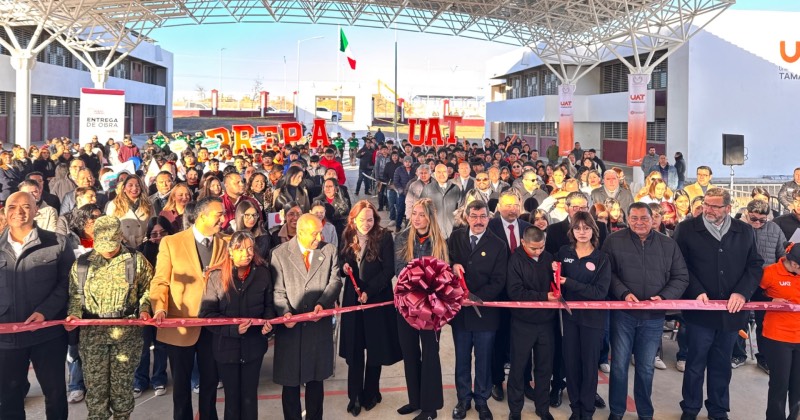 La entrega, realizada en el marco de apertura del ciclo escolar 2026-1 de la UAT, incluyó la techumbre monumental, diseñada para proteger a los estudiantes de las inclemencias del tiempo durante sus actividades al aire libre; así como el estacionamiento, destinado a mejorar la movilidad y el orden dentro del plantel.