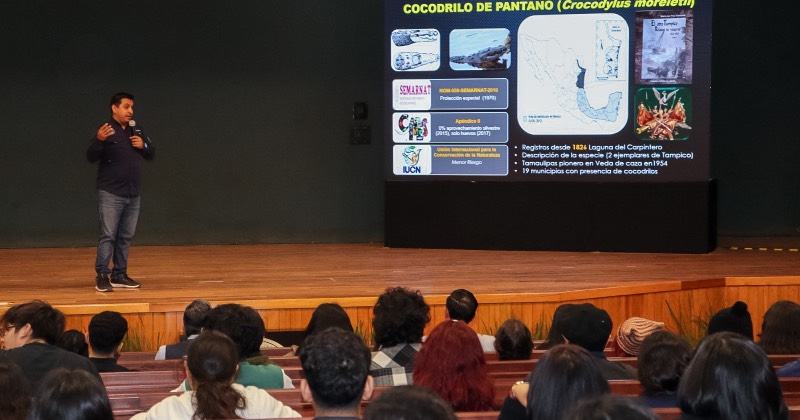 La Universidad Autónoma de Tamaulipas (UAT) llevó a cabo la conferencia “Problemática de las interacciones humano–cocodrilo en Tamaulipas: percepción del riesgo, conducta humana y comunicación social”, un espacio de reflexión académica que vinculó el conocimiento científico con los desafíos sociales y ambientales del entorno regional.