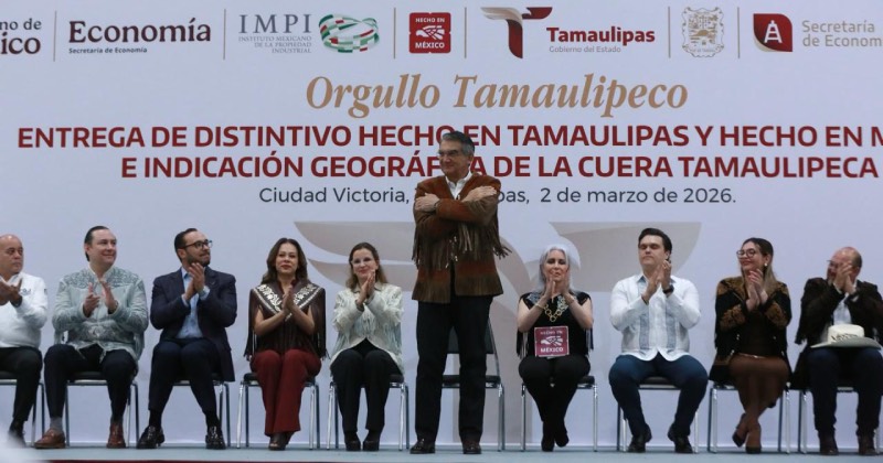 Ciudad Victoria, Tamaulipas.– Autoridades federales y estatales entregaron los distintivos Hecho en Tamaulipas, Hecho en México y la Indicación Geográfica de la Cuera Tamaulipeca en una ceremonia realizada en el Polyforum de la capital.