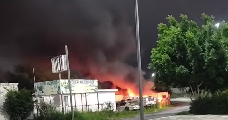 Por la madrugada se alertó sobre el incendio provocado en un taller mecánico, ubicado en la colonia San Ricardo, dejando daños a varias patrullas de la Guardia Estatal que se encontraban en el lugar.
